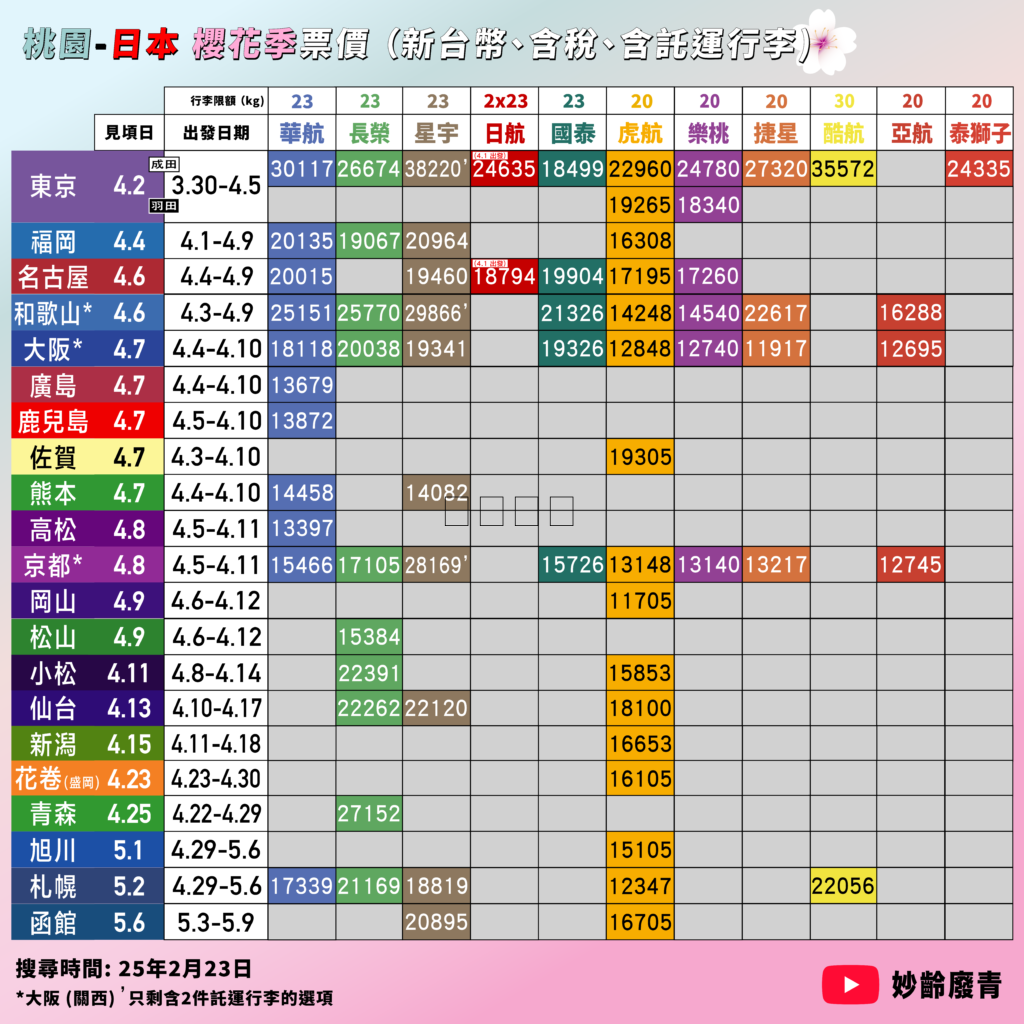 - 東京/和歌山等城市的開花時間,跟台灣清明4天連假重疊,票價特別貴
